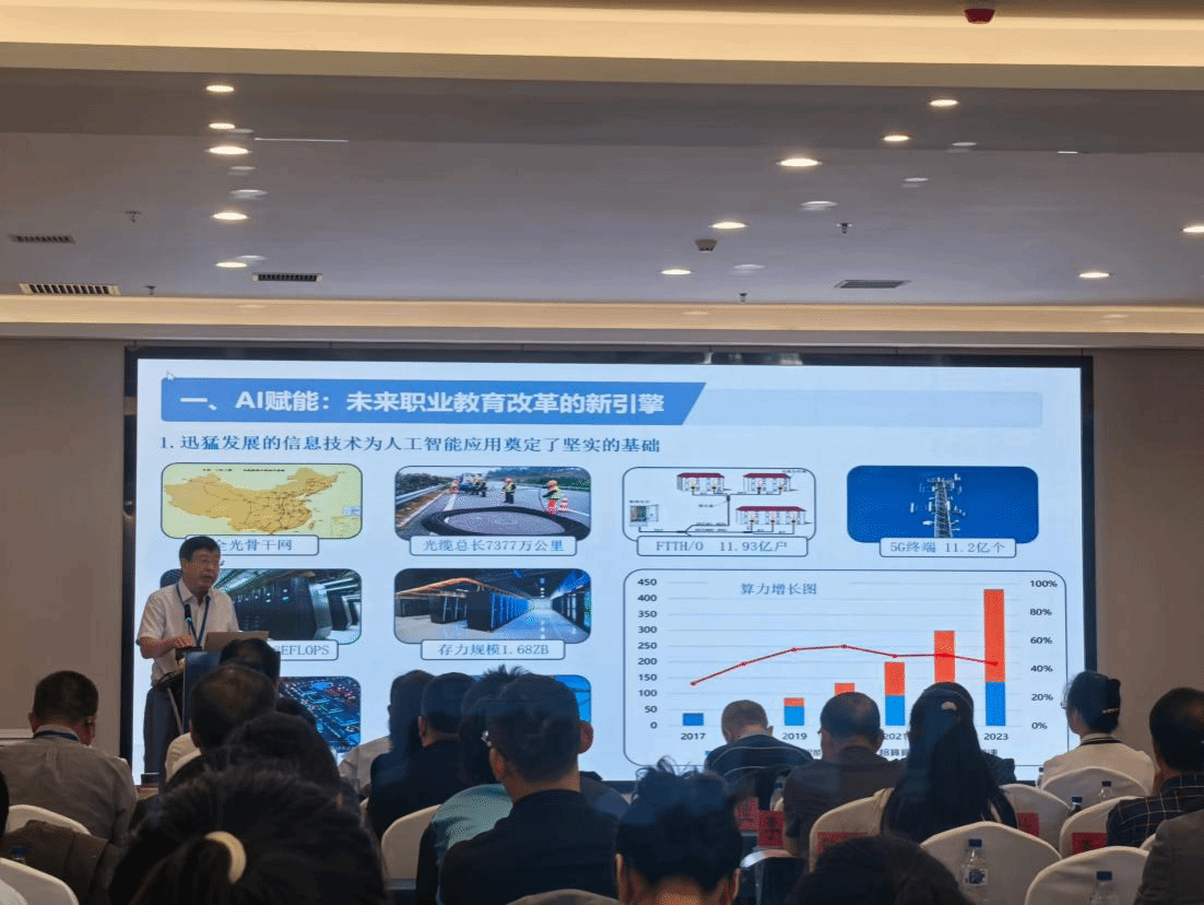 本次会议由教育部职业院校信息化教学指导委员会、高校毕业生就业协会教育数字化服务工作委员会等联合主办,聚焦职业教育数字化转型核心议题。会上,专家围绕《职业院校人工智能应用指引》《数字化赋能教师发展行动通知》等政策进行深度解读,详细介绍 2025 年全国师生数字素养提升实践活动案例征集要求与撰写技巧,并针对 “AI 助力新专业教学标准落地”“人工智能在教育教学管理中的应用”“专业群思政育人体系建设” 等关键内容展开专题分享,为参会教师带来前沿理念与实践经验。
