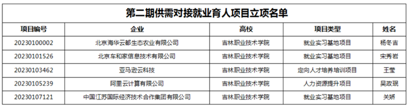 本次就业育人项目申报中与bv伟德合作企业包括北京海华云都生态农业有限公司、北京车和家信息技术有限公司、亚马逊云科技、阿里云计算有限公司、中国江苏国际经济技术合作集团有限公司5家优秀企业,合作项目内容涵盖了就业实习基地、人力资源提升和定向人才培养培训方面。