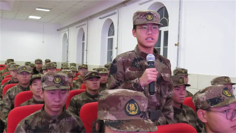 尹成龙在东山红色文化园门前为大学生预备役连成员讲述了发生在延边地区的红色故事——秋收斗争和春荒斗争,吴澥在行政楼三楼学术报告厅领学了《中华人民共和国爱国主义教育法》的内容,对重点内容进行了解读。
