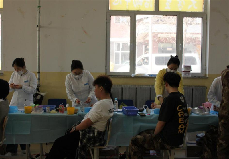 同学们在医务室和校学生会工作人员的引导下,依次进行了信息登记、血液类型检验、静脉采血等环节。同学们纷纷挽起袖管,坐在采血椅上献出“青春热血”,真正将奉献做到了内化于心、外化于行。