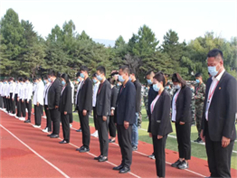 9 月 18 日上午, 全体辅导员、2020 级和 2021 级学生代表、2022 级全体学生在操场整齐列队、庄严肃立……9 时 18 分, 空袭警报响起,全体师生低头默哀, 国旗缓缓降下,那是提醒我们勿忘国耻的声音!昭昭历史, 不容忽视,更不容忘却; 悠悠钟鸣, 为了逝者,更为了和平。不忘国耻方可奋发图强,铭记历史才能开创未来。