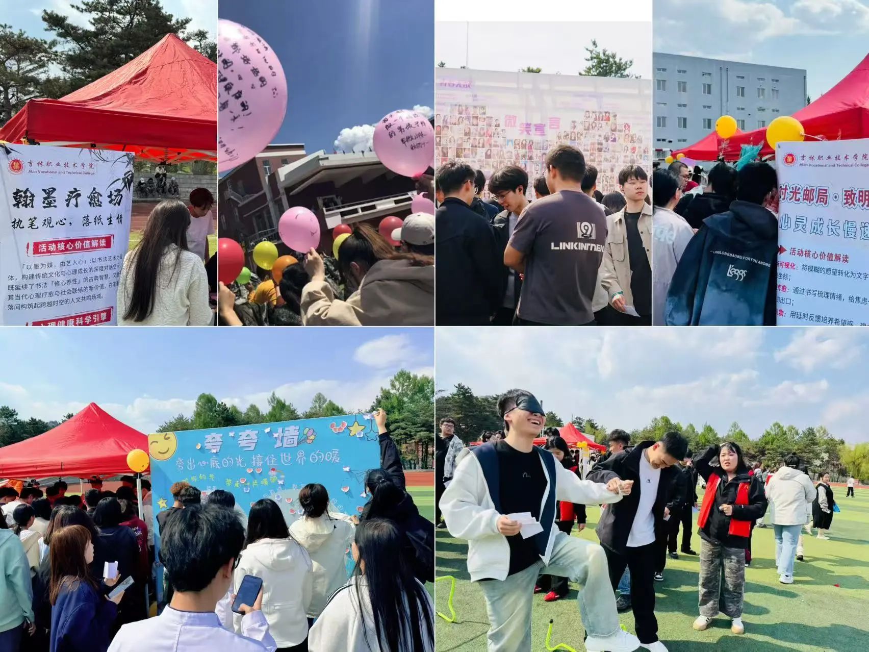 随后启幕的“心理游园嘉年华”备受好评,其沉浸式的体验模式深受师生喜爱。活动创新设置“集章打卡”机制,20个主题体验点将心理健康教育与传统文化智慧巧妙融合。这里有“今天你微笑了吗”“笑闹江湖”“闻鸡起‘武’”等身心调适项目,帮助同学们在趣味活动中调节情绪、放松身心;也有“信任有你”“同心鼓”“不倒森林”等协作挑战环节,通过团队合作培养同学们的信任与默契;更有“夸夸墙”“未来信箱”等情感表达空间,让同学们能够倾诉心声、展望未来。学生们在完成各项挑战、收集“心灵能量印章”的过程中,真切感受到“每一次突破都是自我解锁”的成长喜悦。有现场参与者感慨道:“盖章时好像在给内心的勇气盖戳,这种仪式感很治愈!”这一感言充分体现了活动“在体验中认知、在互动中成长”的设计初衷。