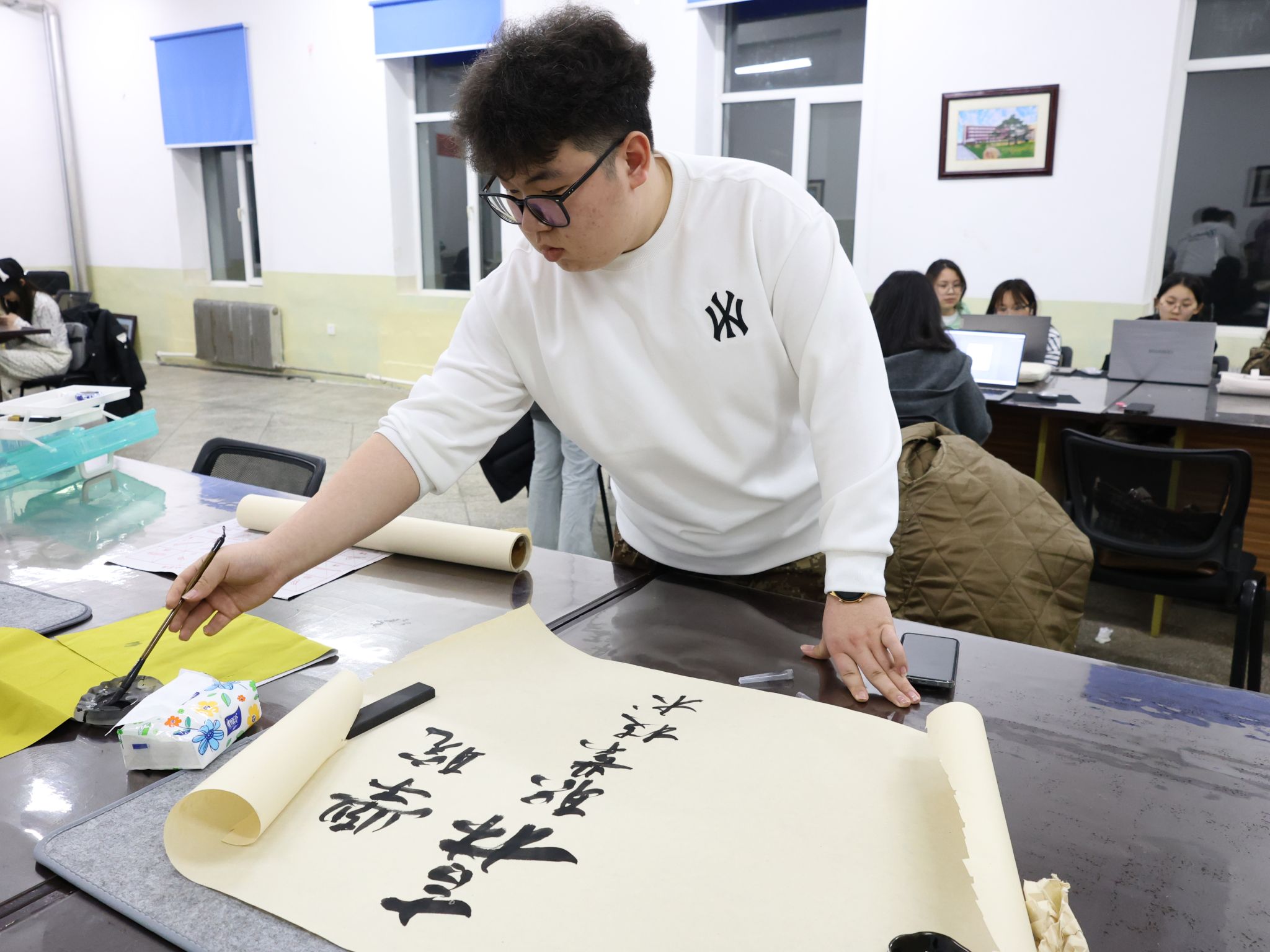 在书法社团的日常活动中,同学们在专业老师的指导下,从最基本的笔画练习开始,逐步掌握楷书、行书、隶书等多种书体的书写技巧。老师会耐心地纠正每一位同学的姿势和笔法,确保大家能够规范书写,养成良好的书法习惯。