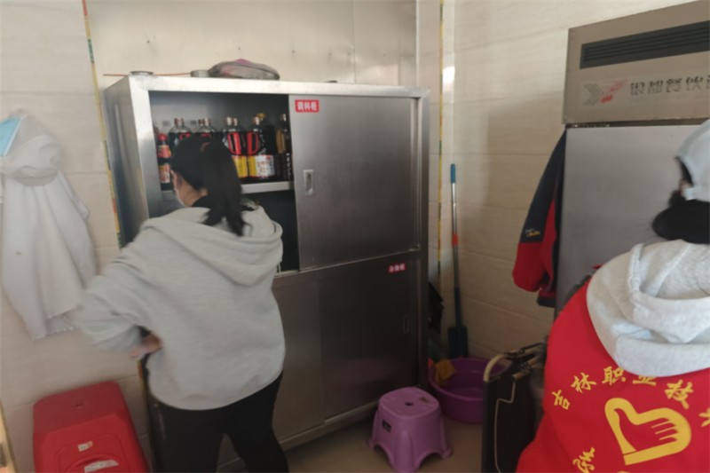 9月25日下午,后勤处万老师带队检查学校食堂食品卫生安全工作,校学生会志愿者陪同检查。