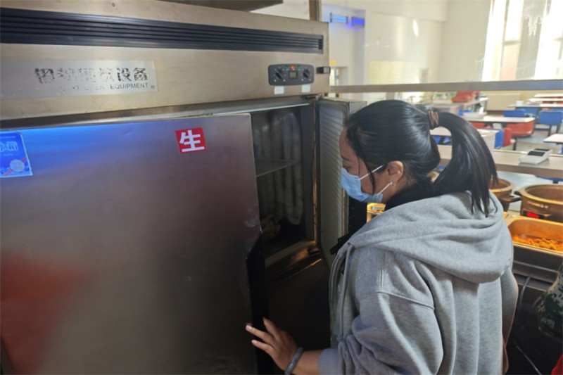 万老师带队深入学生食堂检查指导工作。她认真查看了学生食堂就餐环境、后厨卫生、仓库食品储藏,冷藏库食品卫生、食品留样等状况,详细翻阅了各类卫生状况登记表,仔细询问了师生意见收集及反馈情况,对检查中发现的问题,提出了针对性整改意见。