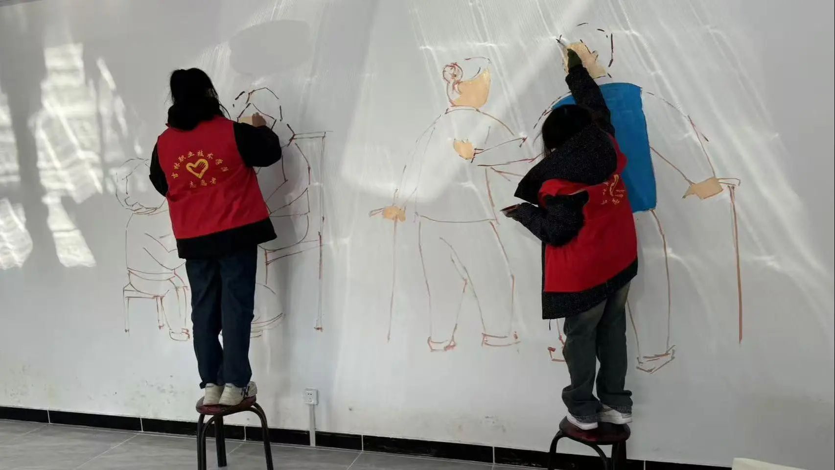 活动现场,志愿者们化身艺术使者,带着对乡村的深情厚谊与强烈的社会责任感,投身于乡村墙绘创作中。在阳光的沐浴下,他们以墙壁为画卷,用画笔描绘乡村的未来蓝图。无论是乡村的田园风光、古老的农耕文化,还是社会主义核心价值观与乡村振兴的宏伟愿景,都在志愿者们细腻笔触与缤纷色彩的演绎下,生动地展现在墙壁之上。这些原本单调的墙面,瞬间化身文化传播的窗口,无声诉说着乡村的故事与梦想。