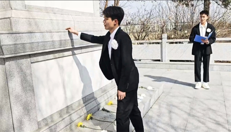 在革命烈士纪念碑前,全体师生整齐列队,神情肃然,怀着无比崇敬的心情向长眠于此的革命烈士们鞠躬默哀,表达缅怀之情。随后,大家来到无名烈士墓碑前,向无名烈士敬献鲜花,清扫烈士墓碑,以这种方式寄托我们的哀思。
