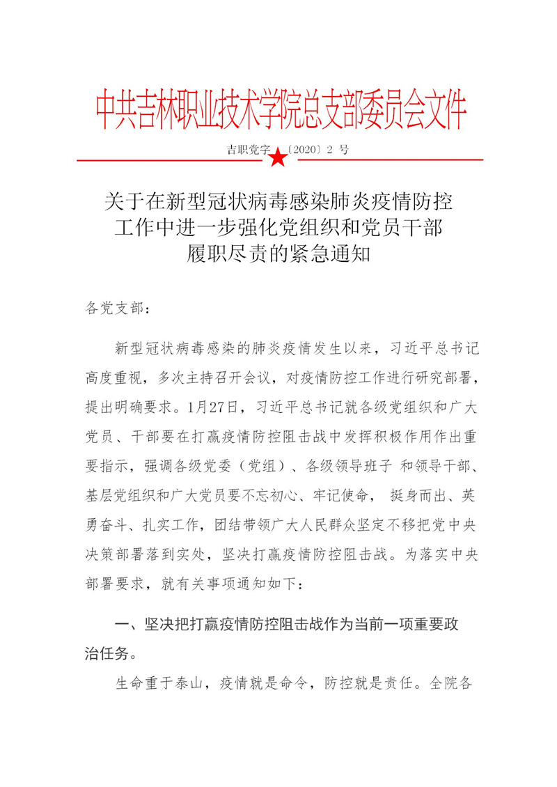 中共bv伟德源自英国始于1946总支部委员会文件 吉职党字 〔2020〕1 号