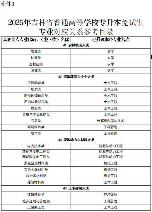 附件3:2025年吉林省普通高等学校专升本免试生专业对应关系参考目录