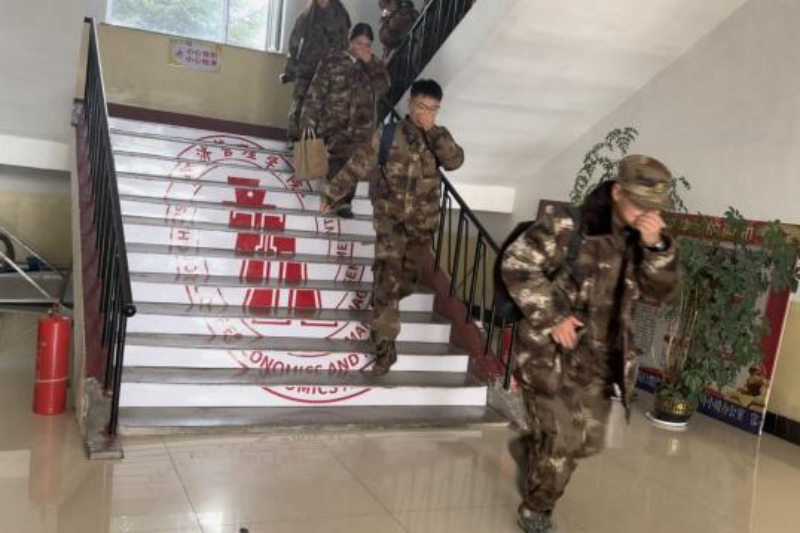 随着演练指令的下达,模拟火灾警报响起。学生干部迅速组织学生们放下手中的书本和学习工具,按照预先规划的逃生路线有序撤离。辅导员老师们也迅速行动起来,引导学生们保持冷静,避免在逃生过程中发生踩踏等次生灾害。整个逃生过程迅速而有序,学生们在短短几分钟内便全部安全撤离到学院指定的安全区域。