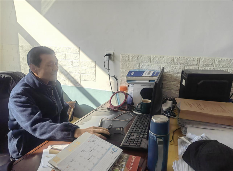 老同志工作在岗位上