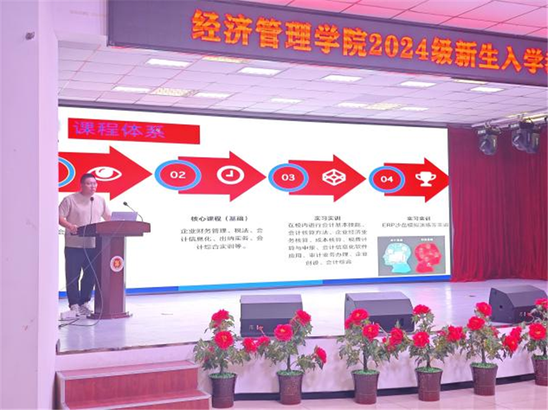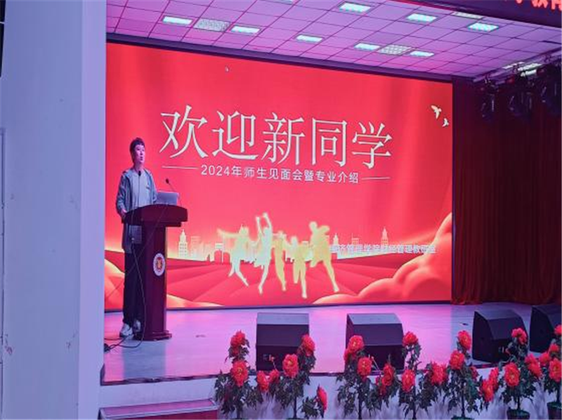 (通讯员 赵冬雪)随着新学期的到来,经济管理学院迎来了一批充满朝气与活力的新生。为了帮助新生们更好地适应大学生活,明确学习目标,9月3日晚上6点,经济管理学院在行政楼三楼学术报告厅举行新生入学教育大会。学院领导出席了此次大会,各专业负责人以及全体新生参加大会。大会由教学干事赵冬雪主持。