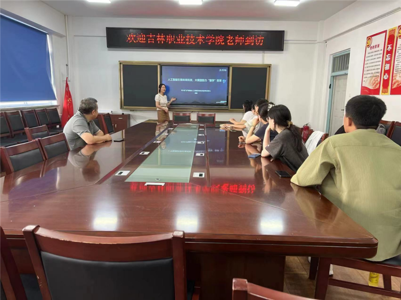 在接下来的人工智能行业沙龙交流会中,科大讯飞吉林分公司智慧城市副总监孙权做经验分享。孙权以“用人工智能建设美好世界”为主题,介绍科大讯飞股份有限公司“应用立地——服务国家战略,解决社会刚需”和“技术顶天——坚持源头技术自主创新,不受‘卡脖子’影响”的发展理念,对人工智能在企业、教育、医疗、城市管理中的应用和目前国内市场对人工智能人才要求等方面做了相关的介绍。针对“AI如何更好与教育结合、AI重点关注哪些场景应用、AI+科研是否存在双刃剑、在大数据和大模型方面如何赋能教育教学、人才培养等校企共赢项目”等问题,参访教师与科大讯飞相关专家深入交换了意见。