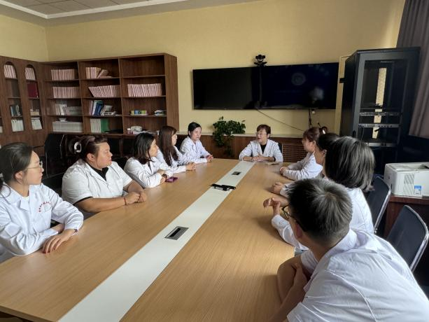 龙井市中医医院医教科主任崔莲花为教师们详细介绍医院各科室设置和先进医疗设备以及特色诊疗项目。教师们认真倾听,并与医院人员进行深入探讨。随后,参观了医院各科室护理单元、门诊、康复科、影像科、药剂科等,各科室负责人认真介绍了科室情况、工作流程及科室特色。