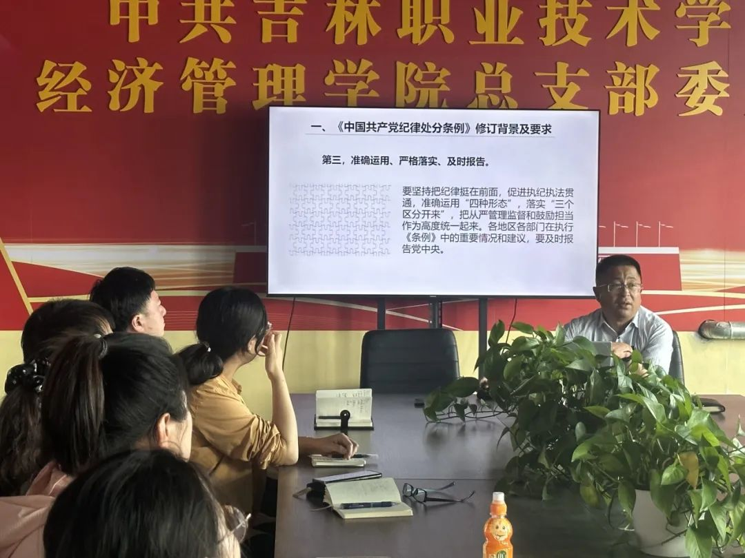 (通讯员 孙畅)为推动党纪学习教育走深走实,深入学习《中国共产党纪律处分条例》,5月22日,经济管理学院党总支开展党纪学习教育专题学习活动。活动由党总支书记王泽强主持,学院全体党员参加。