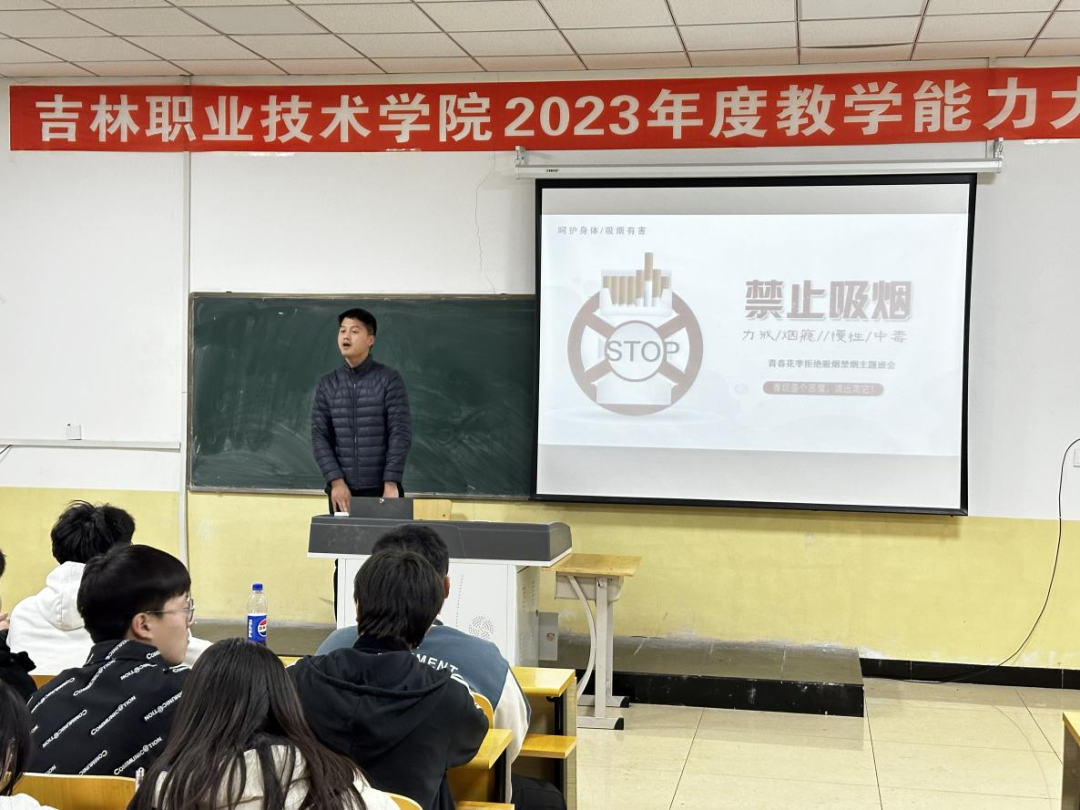 医药学院23级辅导员胡冠争用通俗易懂的图片和视频向同学们介绍了拒绝吸烟的必要性,告诉学生远离烟草、珍爱生命,自觉抵制烟草的诱惑,共同营造无烟环境。胡冠争号召大家自觉遵守公共场所禁止吸烟的规定,做禁烟的践行者,为每一位学生营造一个健康、无烟的学习和生活环境。
