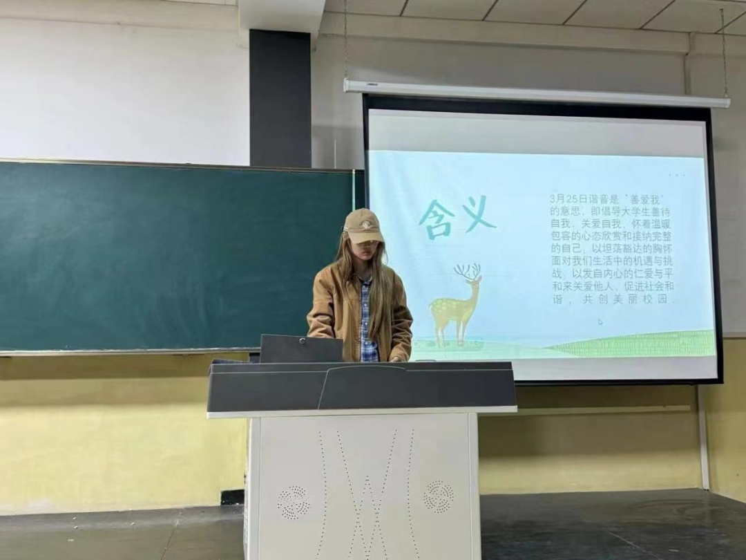主题班会上,主持人为同学们讲解了3月25日谐音是“善爱我”的意思,倡导同学们怀着温暖包容的心态欣赏和接纳完整的自己;以坦荡豁达的胸怀面对我们生活中的机遇与挑战;以发自内心的仁爱与平和来关爱他人,保持稳定的生活节奏,促进社会和谐,共创美丽校园.班会上为同学们进行了心理趣味小测验。