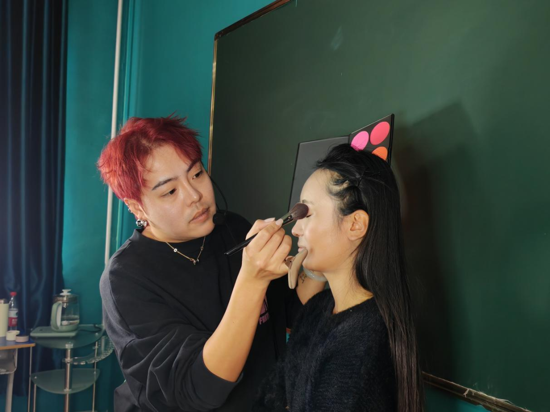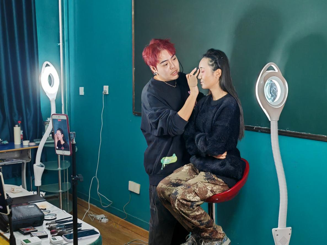吴涛对学生进行了系统的化妆技巧和实操演练,教授学生们基本的化妆技术,如底妆的涂抹、眼影的搭配、唇妆的上色等。学生们不仅可以学习到专业的化妆技巧,同时了解和熟悉各种化妆产品的使用方法和特点。