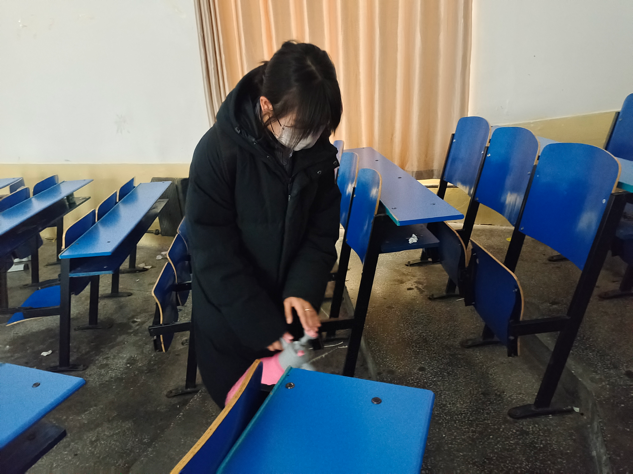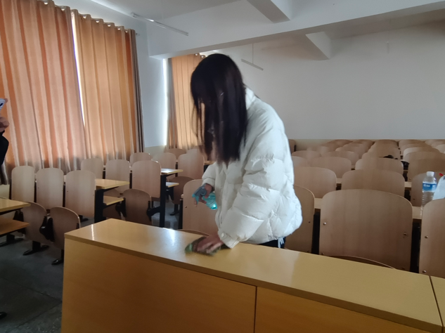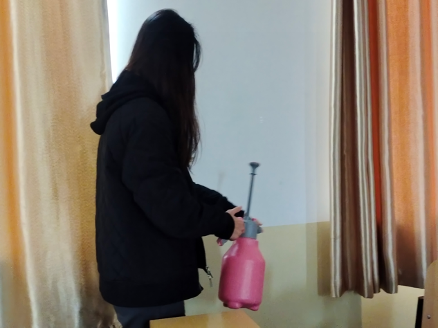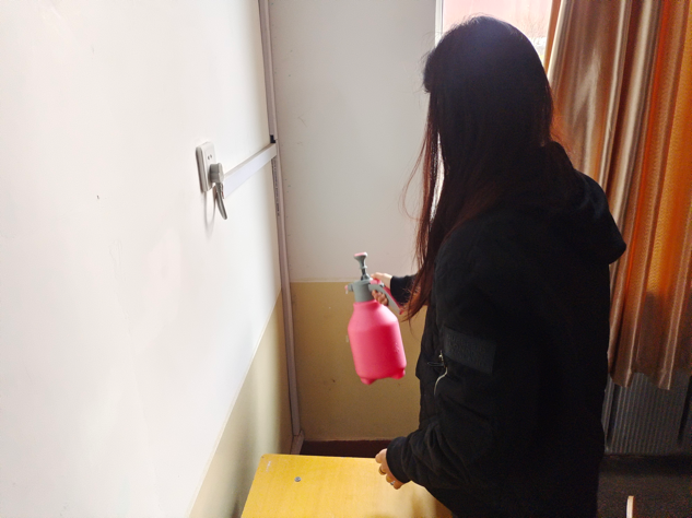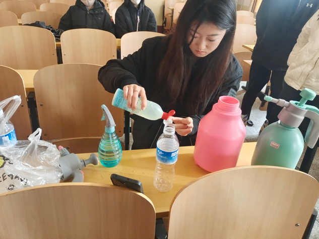 志愿者们严格按照规范的操作流程,按比例配兑消毒液,使用专用喷雾器进行喷洒,确保消杀的质量和效果,严格按照程序对全校走廊楼道、教室等进行了全面的喷洒消杀,不留盲区,不放过每一处卫生死角。经过几个小时的艰苦奋战,志愿者们完成了办公楼、教学楼等的消杀工作。