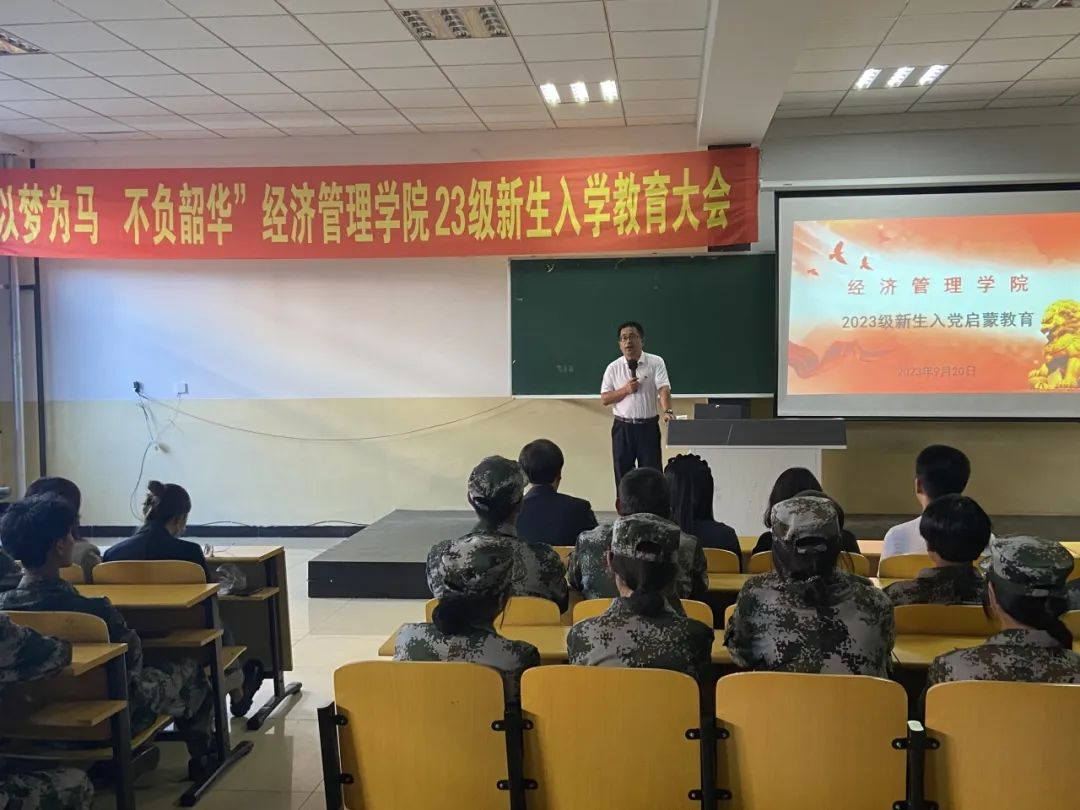 (通讯员 李泓辉)为深入开展好学习贯彻习近平新时代中国特色社会主义思想主题教育,切实做好2023级新生入学教育,帮助学生适应大学生活,树立正确的世界观、人生观和价值观,9月20日下午,学校经济管理学院召开了2023级新生入学教育大会。
