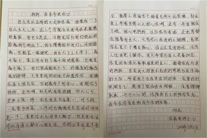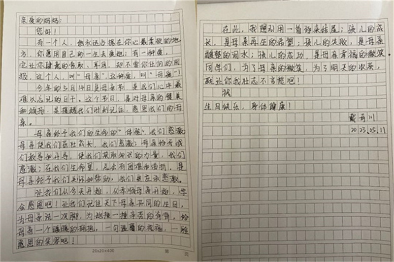同学们积极响应,踊跃参加,认真撰稿,由学院派发信封信纸并收集,在母亲节前统一寄送同学们的“爱”。
