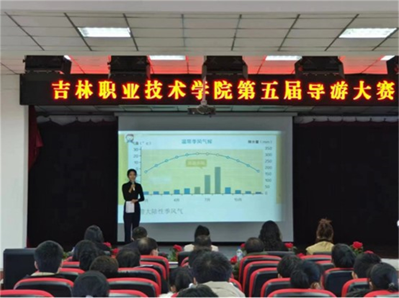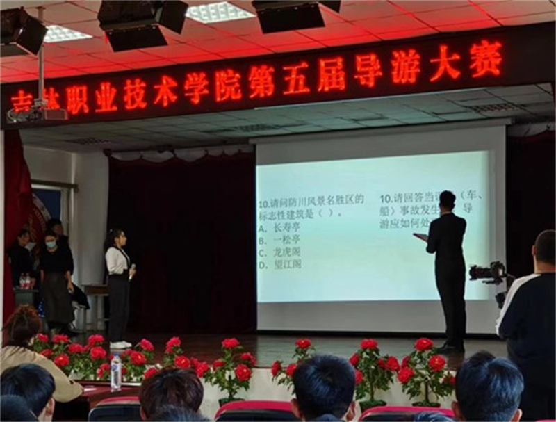 选手们利用多媒体导游方式,通过模拟导游讲解、知识竞答、才艺展示,以生动活泼、准确清楚的导游语言和大方得体的举止,赢得了在场师生的阵阵掌声。