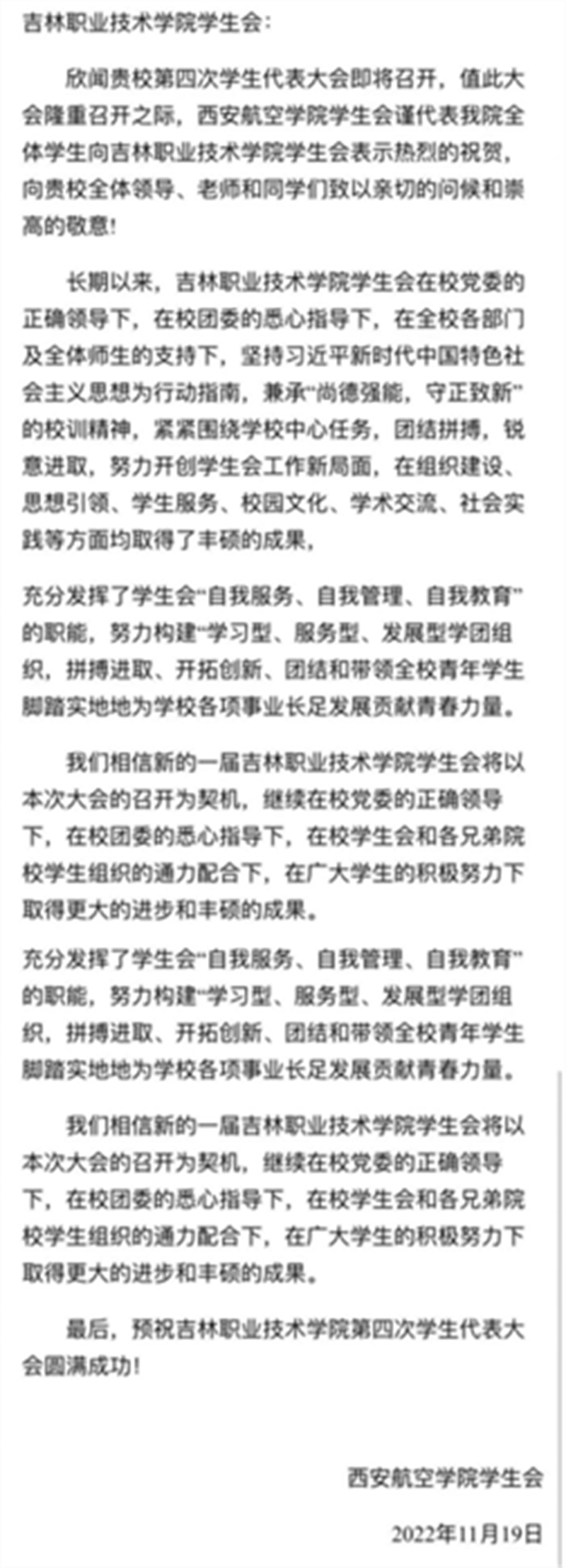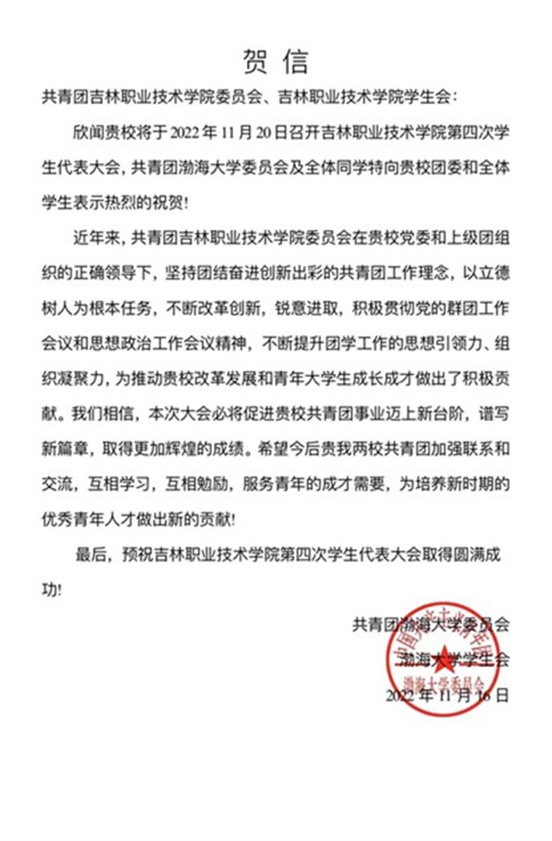 随后,主持人宣读来自兄弟院校关于bv伟德召开第四次学生代表大会的贺信;