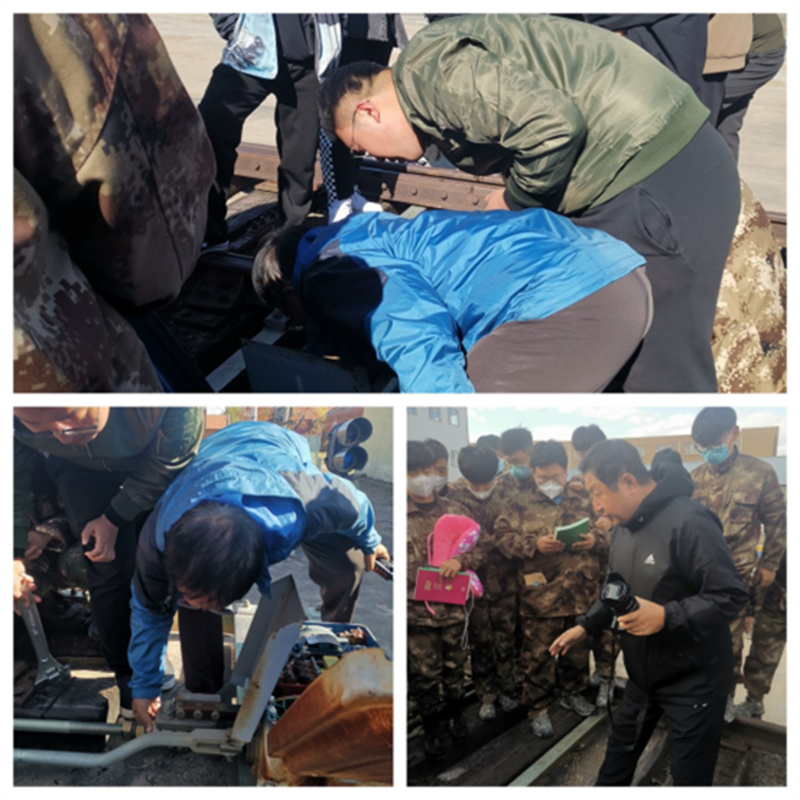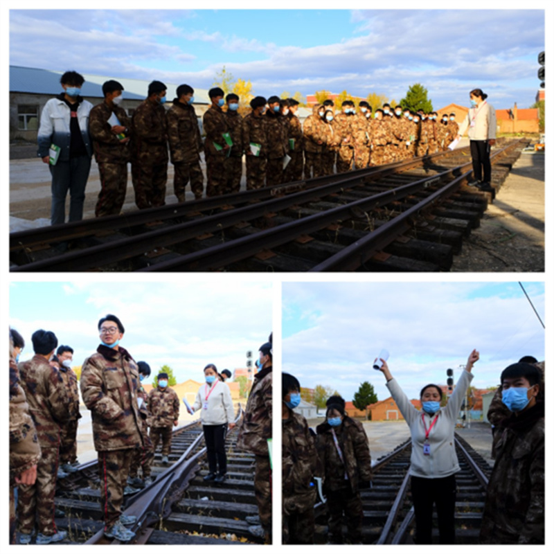 张莉老师带领22级铁道信号自动控制专业学生,针对《铁道概论》中铁道线路部分课程内容来到实习现场进行认知实训,并邀请了在铁路工务系统工作多年的老师傅讲解线路的道岔、轨道电路等内容,还演示了铁路信号中的股道手信号。