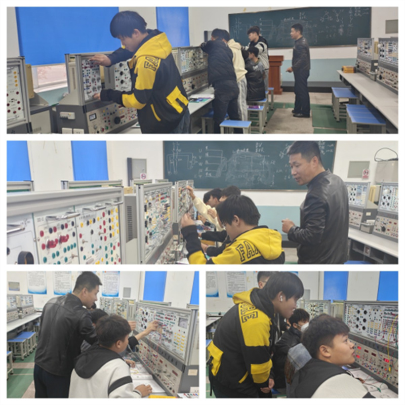 图为陈兆龙老师带领学生们进行电力电子技术课程实训