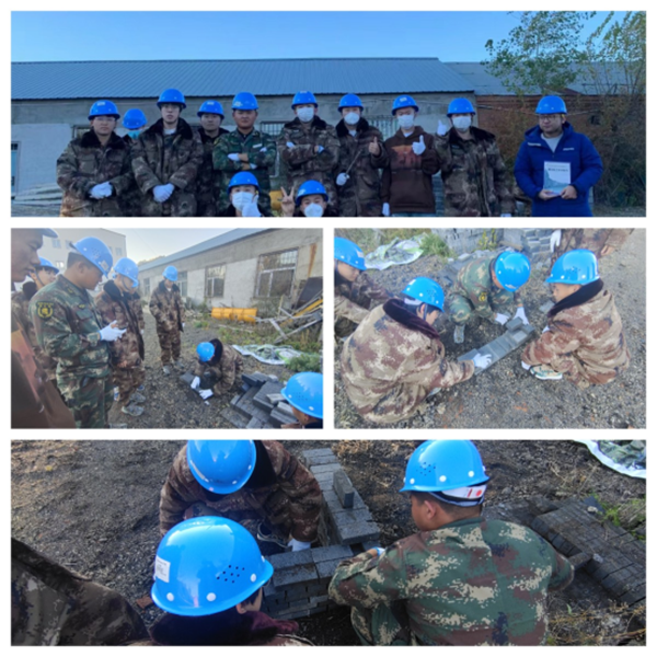 图为马千兴老师带领学生们进行建筑施工现场演示实训