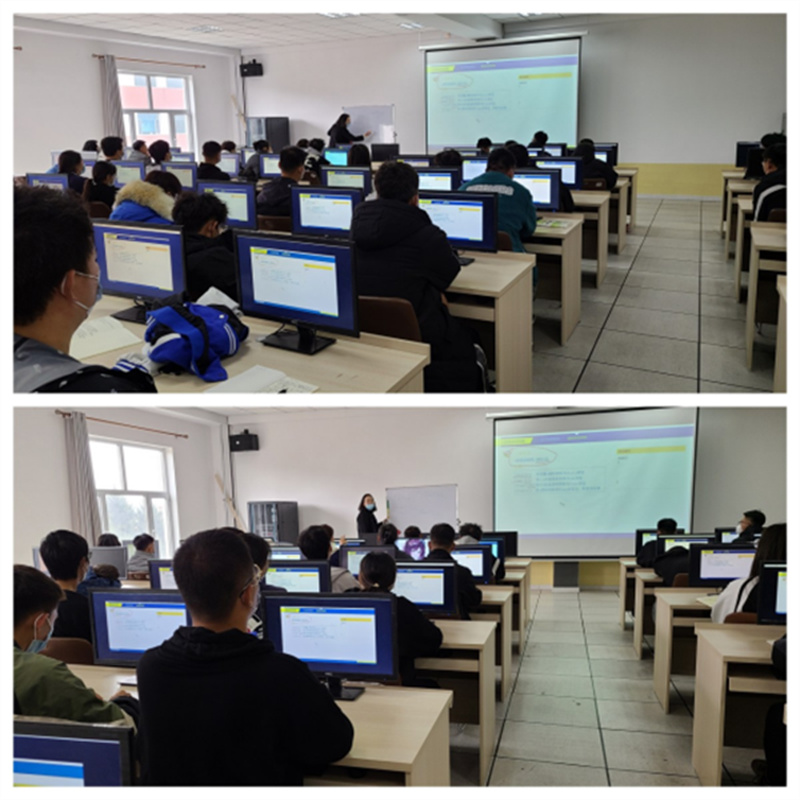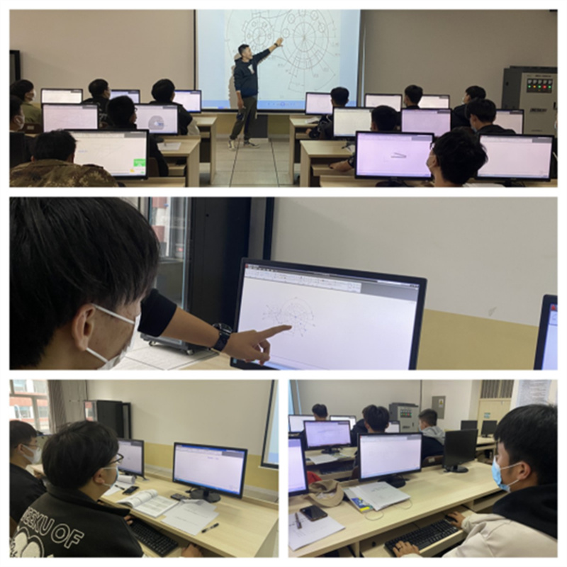 图为吴限老师带领学生们进行机械CAD制图课程上机实训