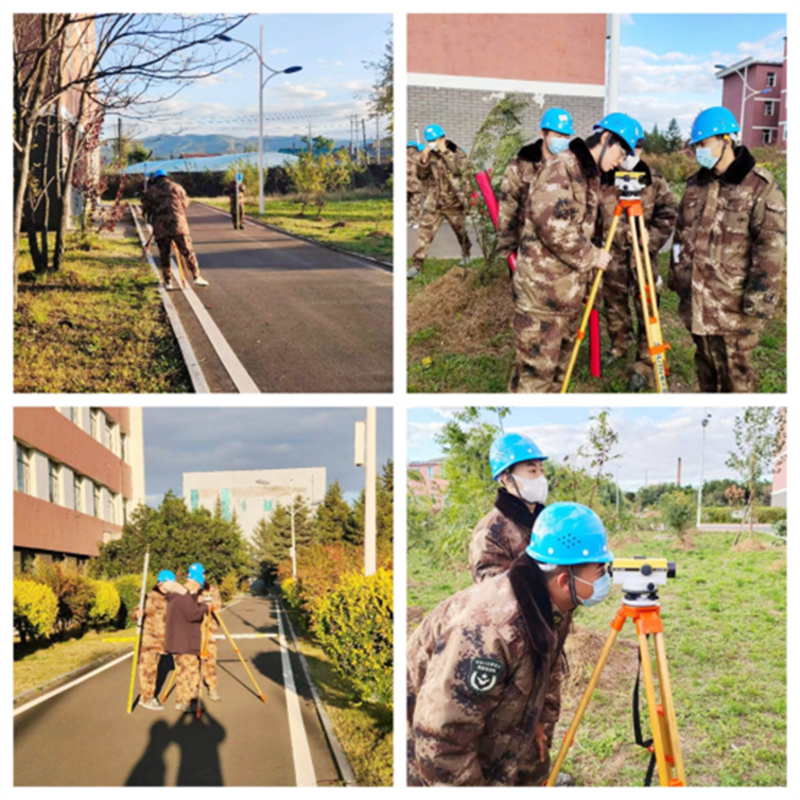 图为马千兴老师带领学生们进行建筑施工测量实训