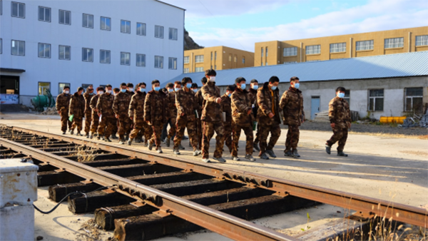 图为bv伟德22级铁道信号自动控制专业学生整齐进入实训基地