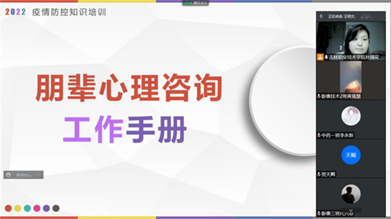 为更好了解疫情下学生心理状态,提高bv伟德朋辈心理咨询队伍工作能力,增强心理援助的针对性和有效性,4月21日晚,bv伟德源自英国始于1946大学生心理健康指导中心以“做阳光下的守护者”为主题,开展了第三期线上朋辈心理互助沙龙。活动由心理中心教师朴国花主持。
