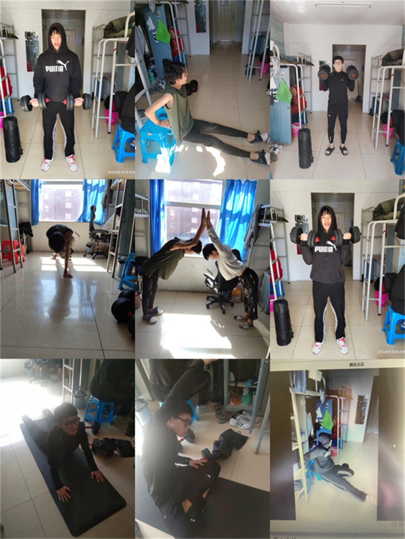 苗老师通过“直播操作+线上指导”的模式开展形体训练课,指导学生演练标准形体,并通过线上“一对一,手把手”的教学方式,使学生充分掌握四肢力量与柔韧度练习的要点。通过视频展示学生特点,让学生在练习过程中寻找训练的乐趣,促使学生相互帮助,相互督促。