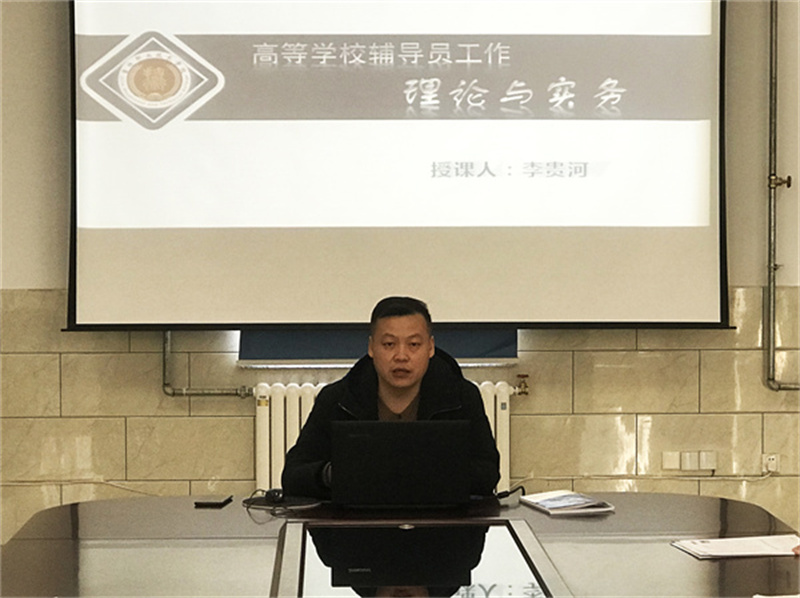 会上,学生工作处处长李贵河就开展培训活动的目的、意义作了动员讲话,并以《高等学校辅导员工作理论与实务》为题,进行了辅导授课,从推动辅导员事业发展的动力、个人对辅导员工作的认识、高等学校辅导员工作实务、高等学校辅导员应注意提升自己、部分工作回顾五个方面进行了理论讲解和经验传授。通过此次培训会,全体参会人员进一步提升了职业信心和荣誉感,增强了责任意识和使命感,提高了工作规划和执行能力,为2022年春季学期学生工作提质创新奠定了坚实的基础。