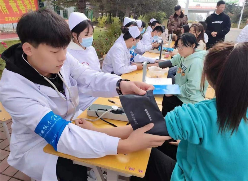 2021年10月8日是第二十四个全国高血压日,为贯彻落实《健康中国行动(2019-2030年)》有关要求,弘扬医学文化,普及健康知识,医药食品学院远志爱护服务团组织开展了以“护航校园,绽放健康,白衣献情,青春激昂”为主题的志愿服务活动,相关专业老师及2020级护理专业志愿者参加活动。