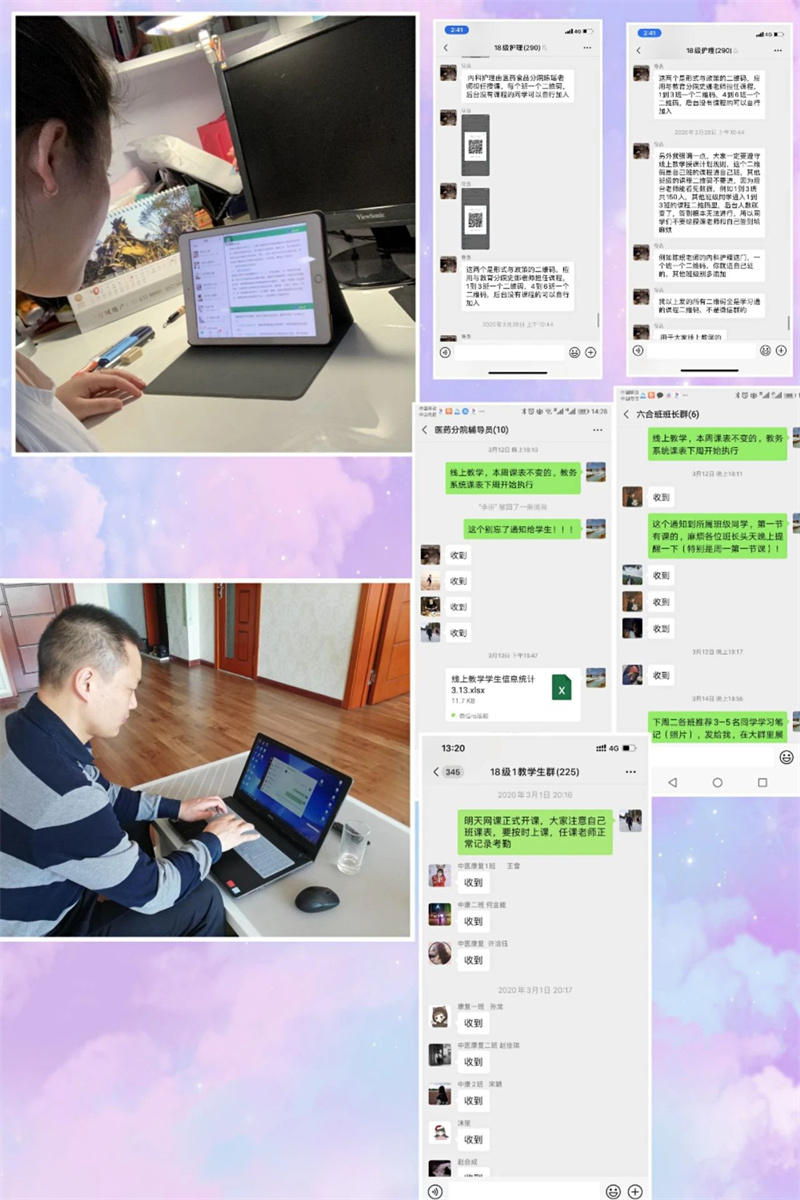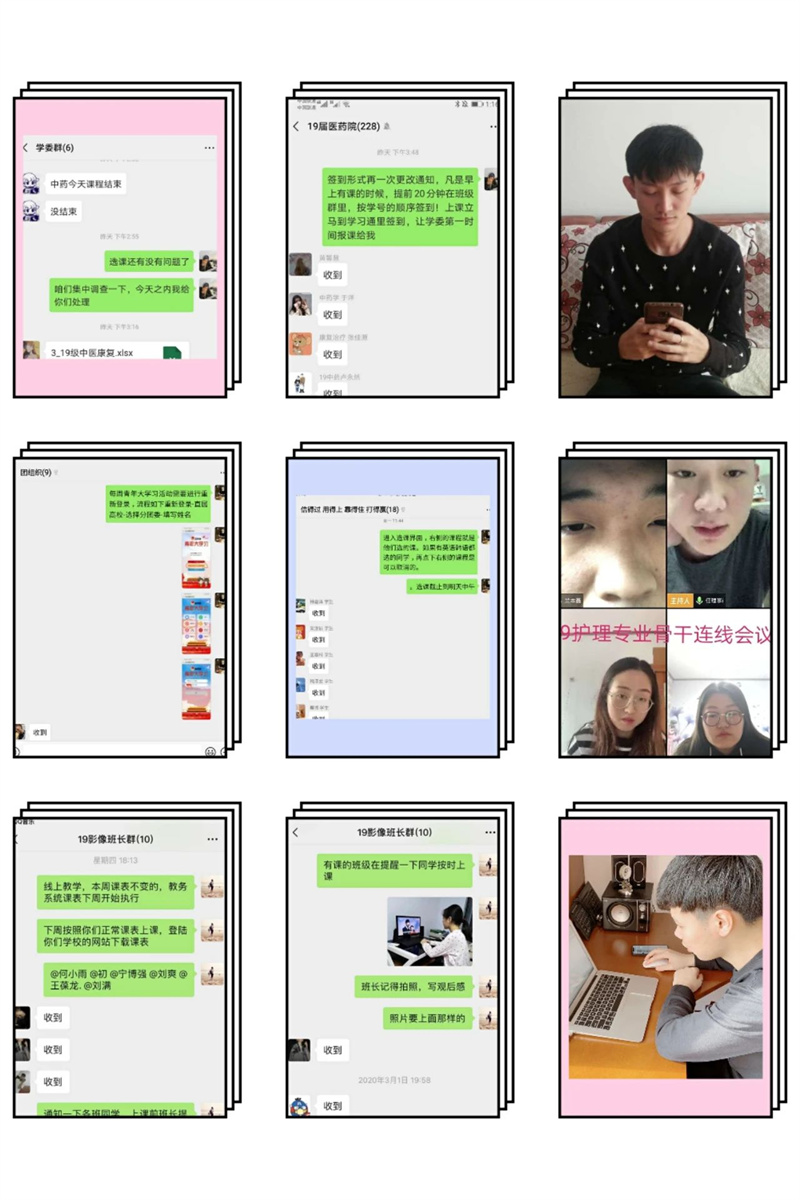 辅导员针对学生在线学习过程中遇到的各类问题,做到及时反馈、集中汇总上报,对学校教务处、学工处下发的各项工作要求做到及时传达、准确解释,做好服务指导工作,并督导学生按时线上签到上课,保证了在线教学工作的顺利进行。