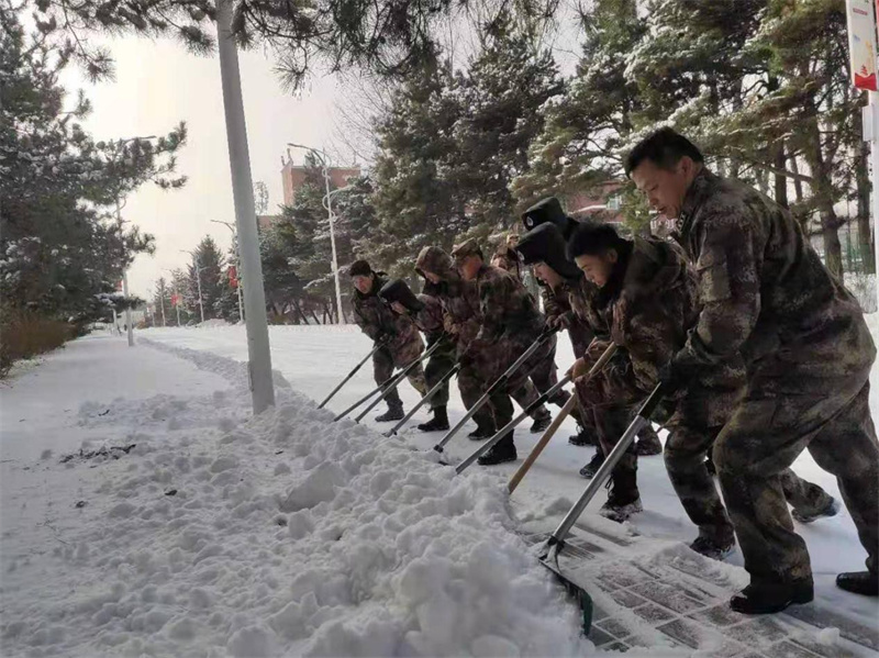 此次破冰除雪工作顺利完成,不仅使校园变得整洁、增强了师生之间的凝聚力,同时也体现了大学生预备连的同学们乐于奉献、坚持不懈的精神,弘扬了吉职学子团结协作、吃苦耐劳的优秀品质。