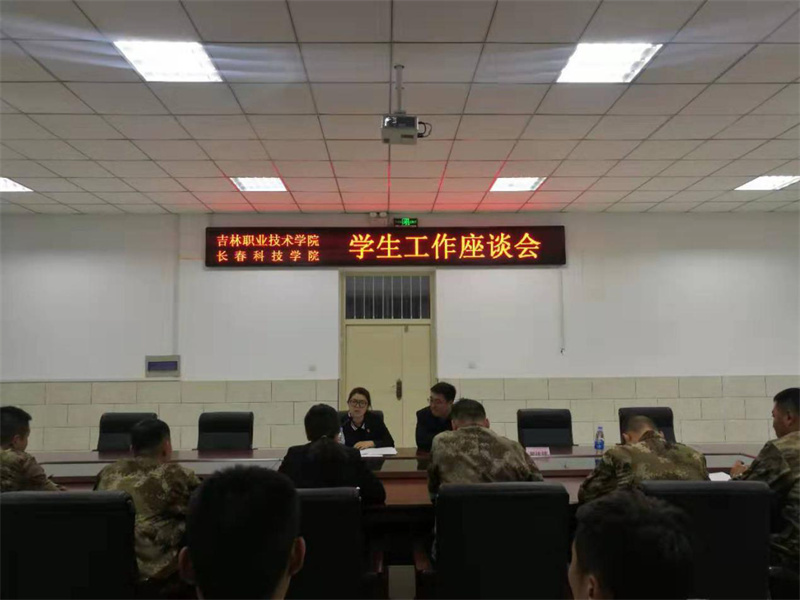 2019年10月24日,我院学生工作处与长春科技学院职业技术学院学生工作处在我院行政楼三楼会议室召开学生工作联合座谈会。本次座谈会双方围绕辅导员队伍建设、管理服务、预备役制教育管理等方面进行了深入探讨与交流。长春科技学院职业技术学院副院长、副书记王东红,学生党支部书记、年级组长张琪,我院学工处处长李贵河、团委书记段世娇、各分院学工办主任、辅导员及学工处全体人员参加了座谈会,会议由团委书记段世娇主持。