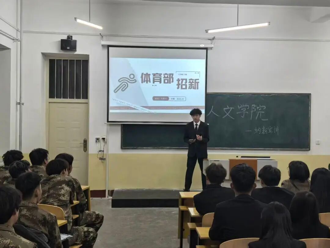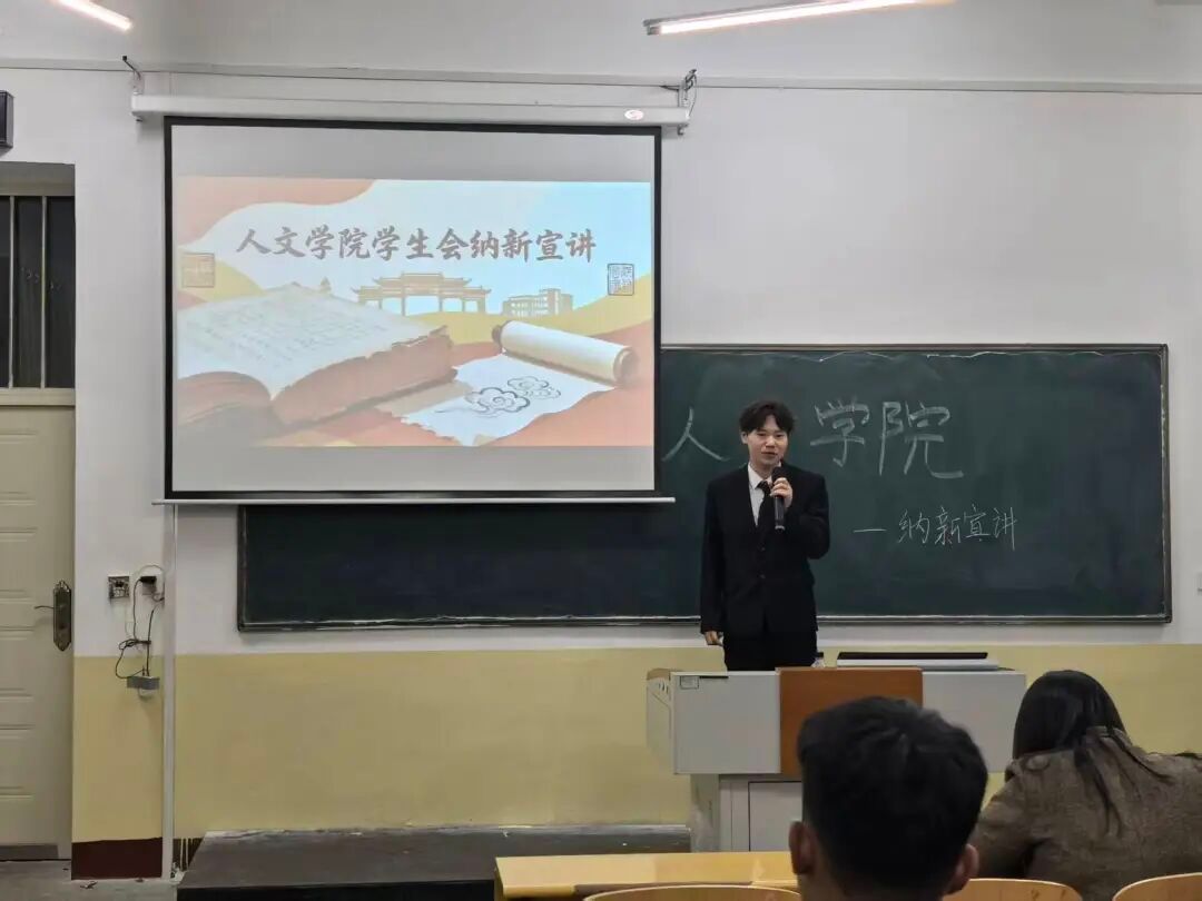 (通讯员 杨月)为助力2025级新生明确规划大学生涯的成长蓝图,进一步壮大人文学院学生会与分团委的人才阵容,打造实践与自我提升的精品平台,10月13日,人文学院分团委及学生会纳新宣讲会圆满举办。人文学院党支部书记、辅导员孙畅,辅导员杨月参会,为同学们鼓劲加油,学生会各部门负责人以及2025级全体新生共同见证了这一重要时刻。
