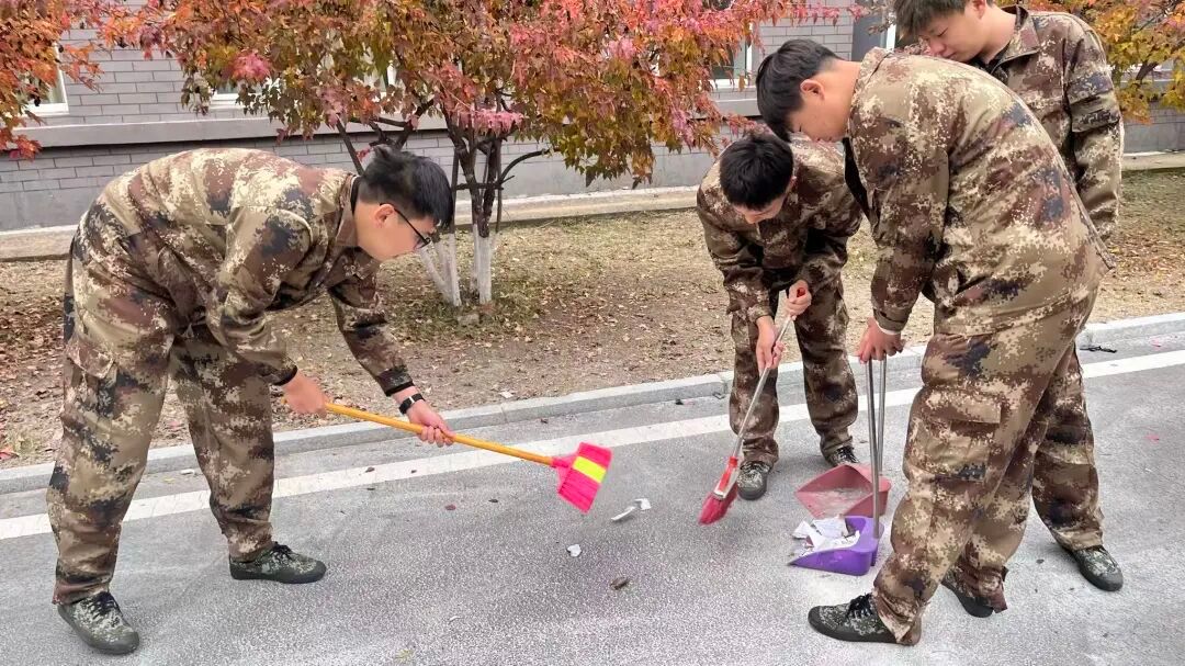室外实操环节,大二学长率先示范灭火器使用方法,“提、拔、握、压”一气呵成,红色灭火器喷出白色粉末,精准扑灭模拟火点。同学们踊跃上前体验,在学长耐心纠正下,逐渐掌握操作技巧,将理论知识转化为实践能力。演练结束后,同学们主动拿起清扫工具,分工合作清理场地杂物和灰烬,很快恢复了场地整洁,彰显了人文学院学子的责任担当。