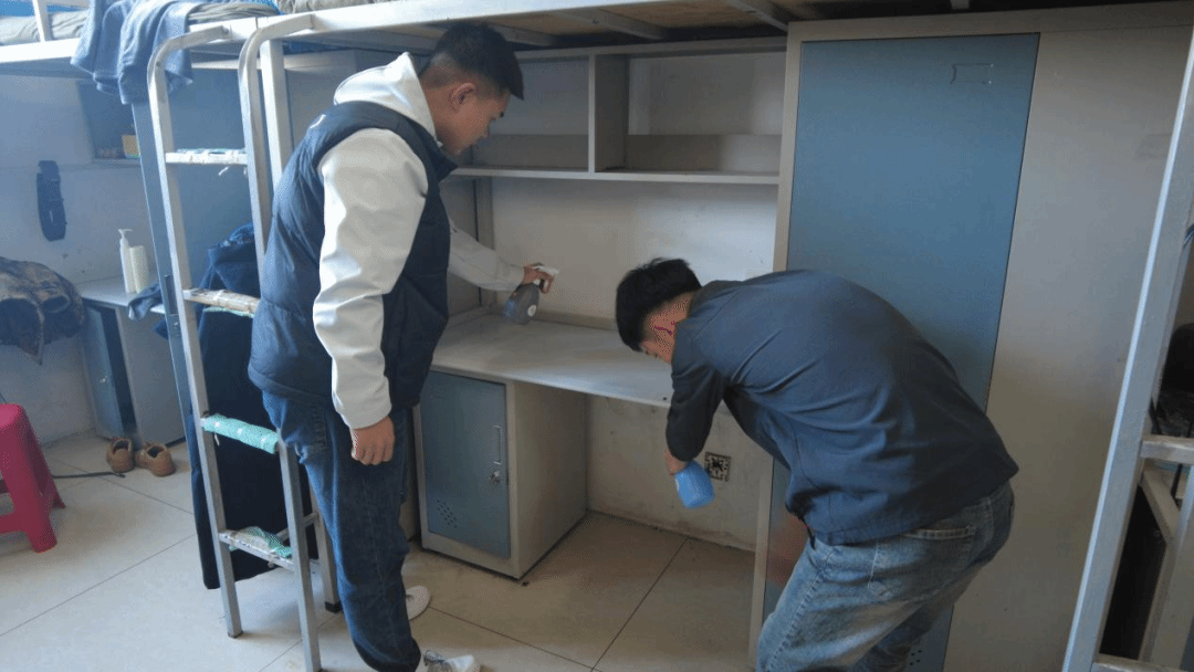 行动前,权益部做足周密筹备:马浩洋牵头召开会议明确分工,提前备齐喷壶、医用酒精、84 消毒液等合规工具;逐一对接各寝室确认无课时间段,避开同学作息;通过班级群科普消毒注意事项,提醒收纳餐具、电子产品等易腐蚀物品。马浩洋强调:“日常消毒要兼顾全面性与安全性,需按比例稀释消毒液,避免损坏同学物品。”