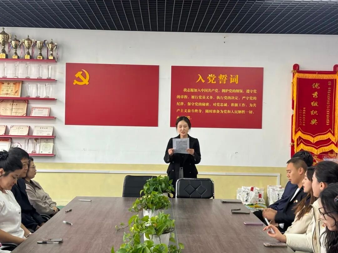 孙畅代表党支部向三名新接收的预备党员表示热烈祝贺,并提出殷切期望。她强调,成为预备党员是人生的重要里程碑,更是新的责任起点,希望三名同志始终牢记入党誓词,持续加强党的创新理论学习,不断提升党性修养,在工作中勇挑重担,在生活中严于律己,以实际行动践行党员义务,充分发挥先锋模范作用。
