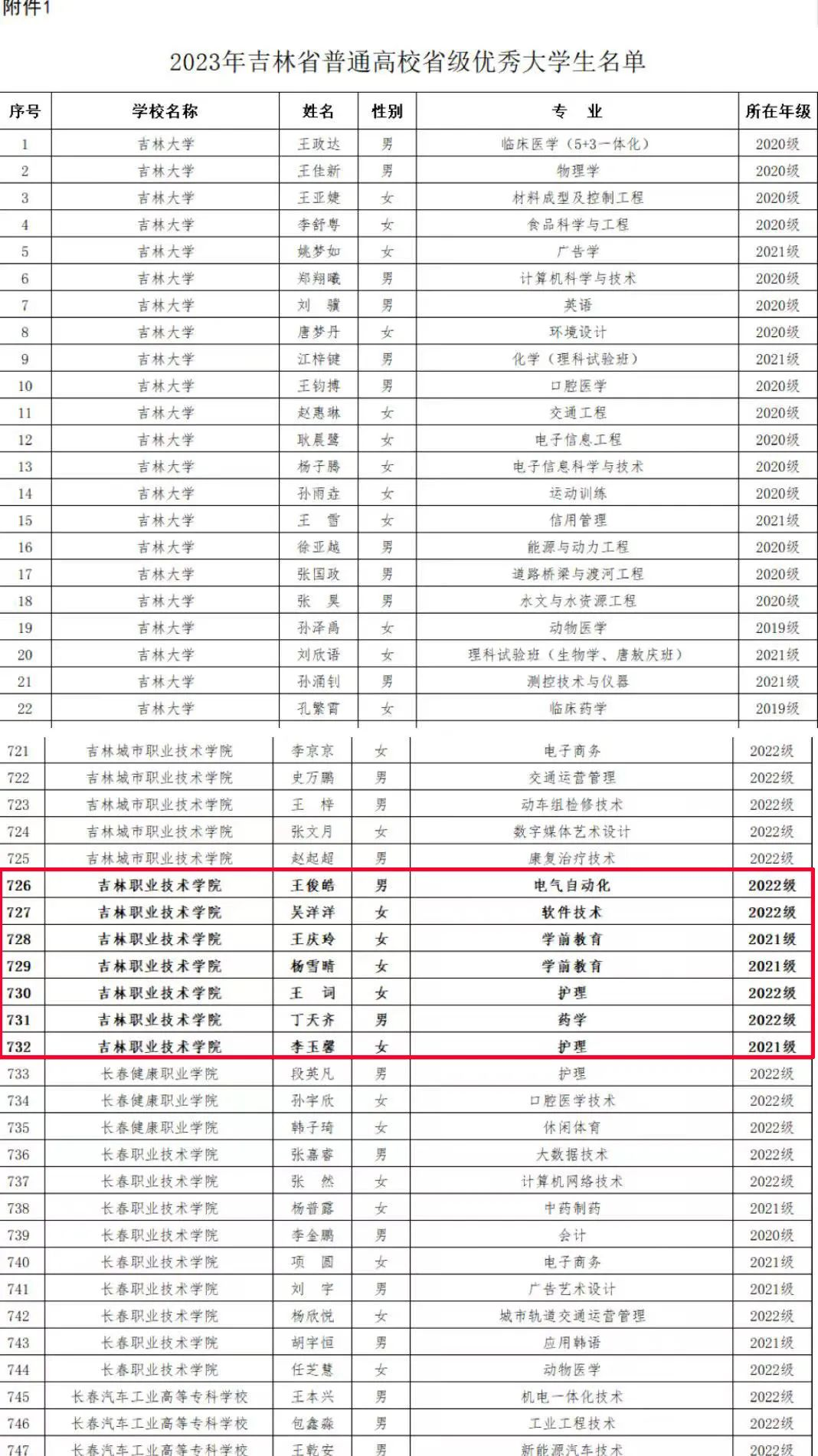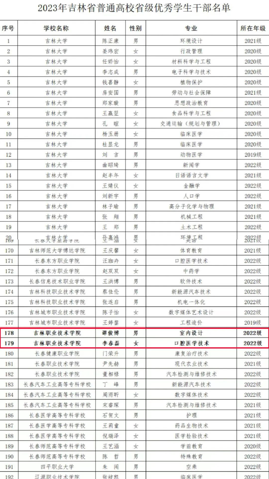 2023年,学校深入学习贯彻习近平新时代中国特色社会主义思想和党的二十大精神,全面贯彻党的教育方针,坚持立德树人根本任务,勇担为党育人、为国育才使命,全面培养德智体美劳全面发展的时代新人,涌现出了一批先进学生个人和集体,充分展现了学校思想政治教育工作成效和人才培养质量。希望吉职青年学子学习先进、争当先进,涵养进取品格、笃行强国之志,踔厉奋发、勇毅前行,在实现中华民族伟大复兴的时代洪流中贡献吉职学子的青春力量。