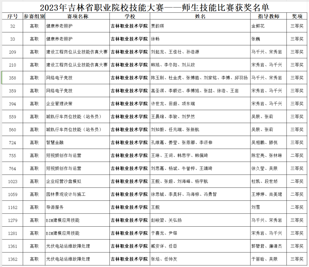 1月10日,吉林省教育厅公布了《2023年吉林省职业院校技能大赛获奖名单》,bv伟德获得多个奖项。学校将充分发挥大赛在技能人才培养中的引领作用,积极开展“岗课赛证”综合育人改革,以赛促教、以赛促学、以赛促改,全方位提升学生职业能力和综合素质,培养更多高素质技术技能人才。