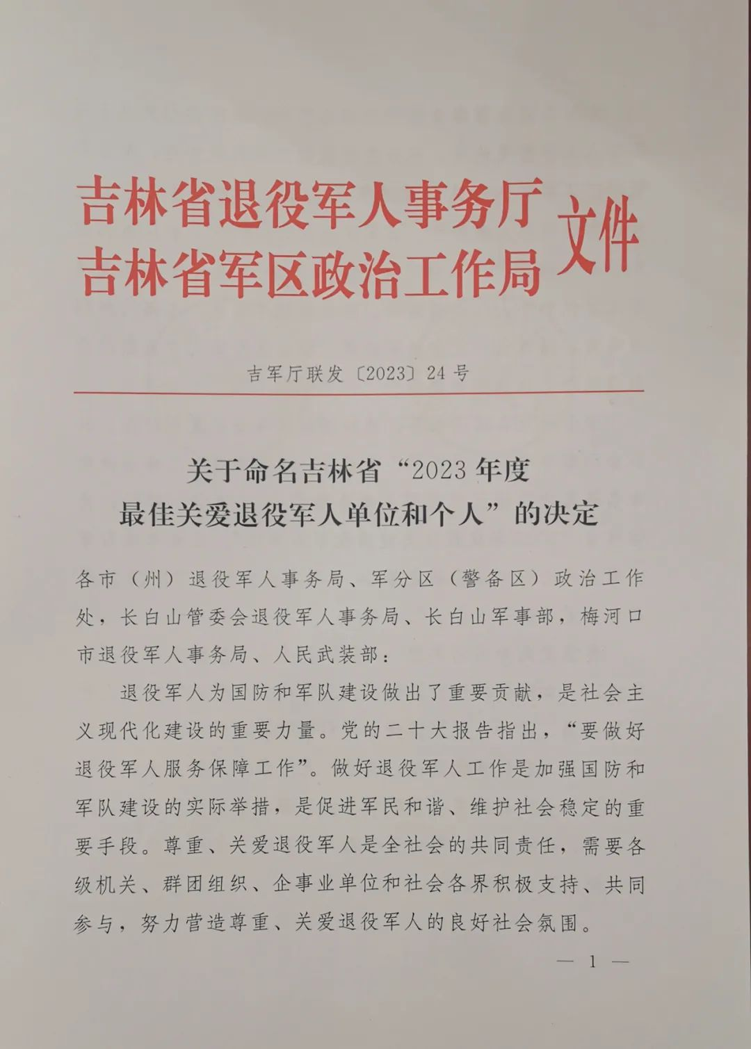 (记者 杨晓明)为深入贯彻落实习近平强军思想和习近平总书记关于退役军人工作重要论述,为讲好优秀退役军人故事,展现优秀退役军人风采,充分发挥典型示范引领作用,引导和带动更多单位和个人关注退役军人事业、支持退役军人工作,12月11日,吉林省举行“情系最可爱的人 2023年度最佳关爱退役军人单位和个人”发布仪式。bv伟德荣获吉林省“2023年度最佳关爱退役军人单位”光荣称号。