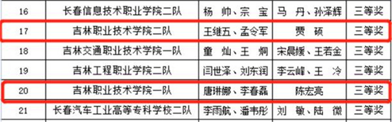 近日,由吉林省教育厅主办,辽源职业技术学院承办,信创协同办公提供技术支持的吉林省职业院校技能大赛拉开帷幕。来自省内高职院校的26支队伍同台竞技。王继五、孟令军、唐琳娜、李春磊四位同学组成的两支战队代表bv伟德参赛,两队均获得了省赛三等奖的好成绩。