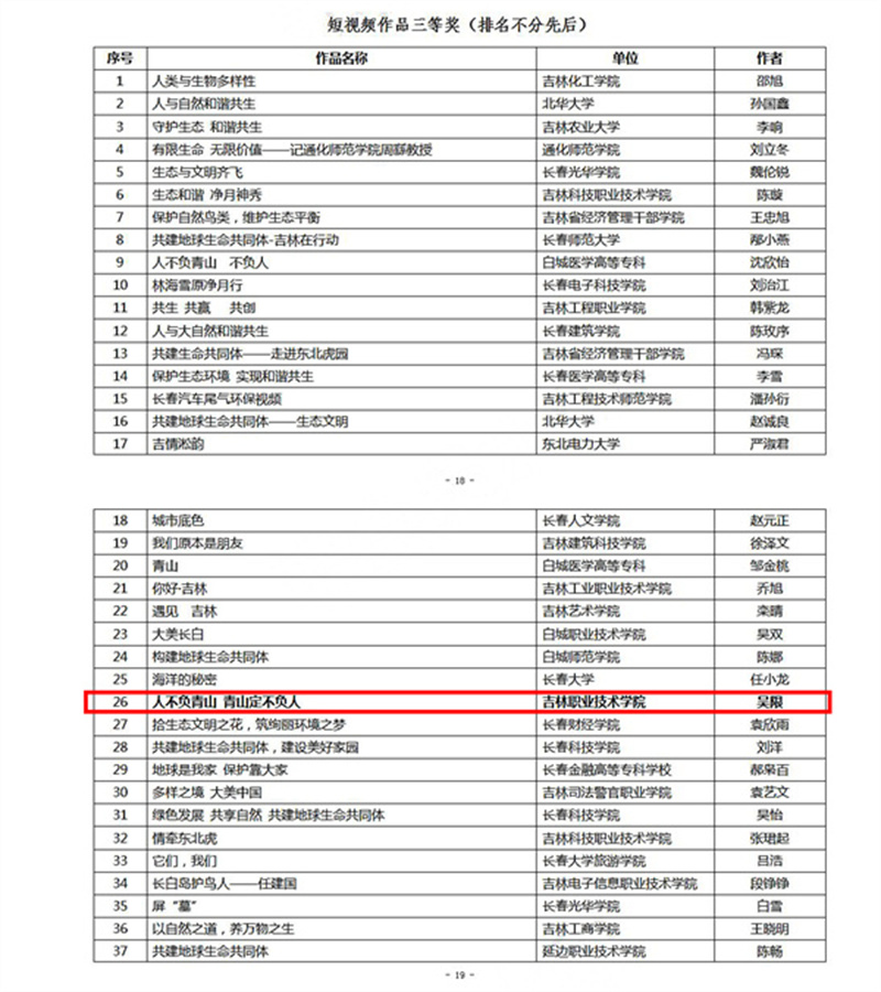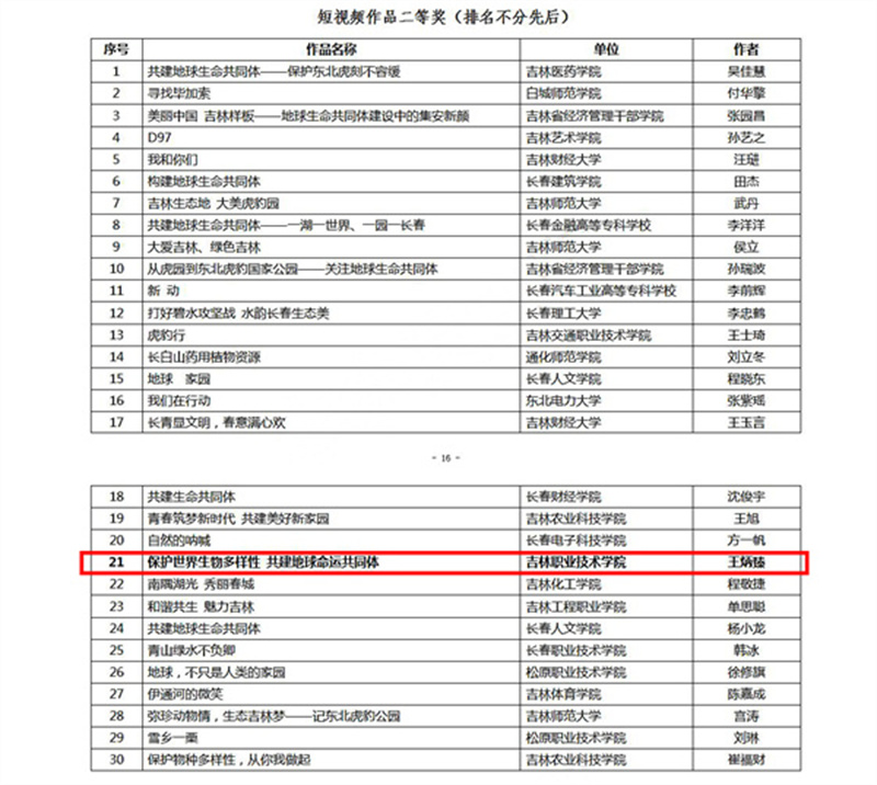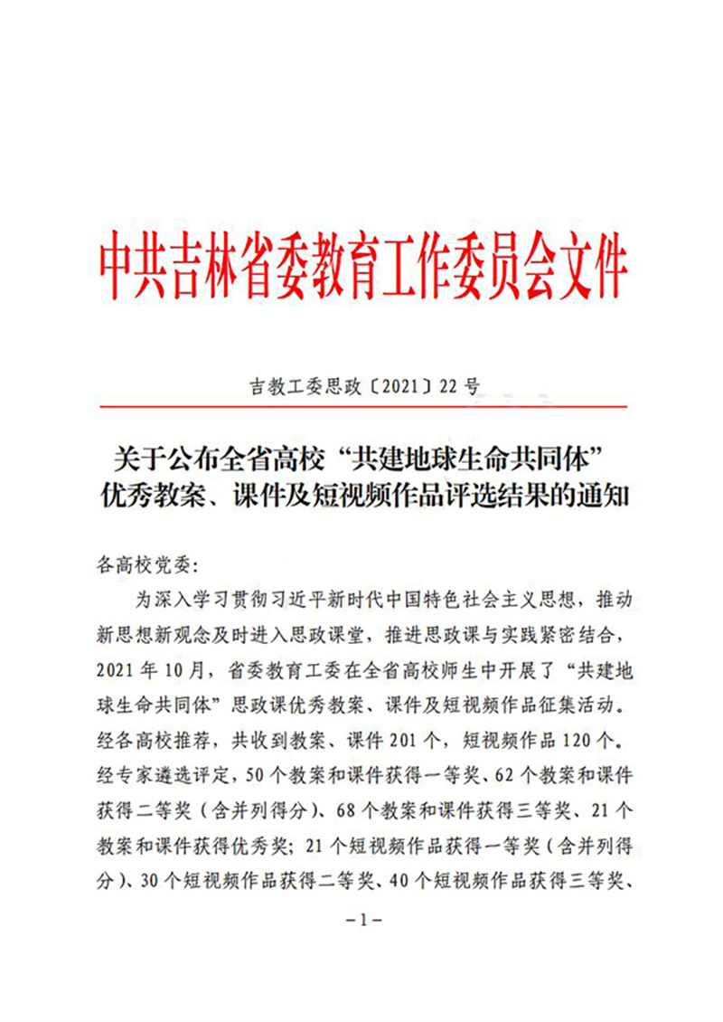 为深入学习贯彻习近平新时代中国特色社会主义思想,推动新思想新观念及时进入思政课堂,推进思政课与实践紧密结合,2021年10月,省委教育工委在全省高校师生中开展了“共建地球生命共同体”思政课优秀教案、课件及短视频作品征集活动。经专家遴选评定,bv伟德教师段世娇荣获“教案和课件三等奖”;学生王炳臻荣获“短视频作品二等奖”;教师吴限荣获“短视频作品三等奖”。