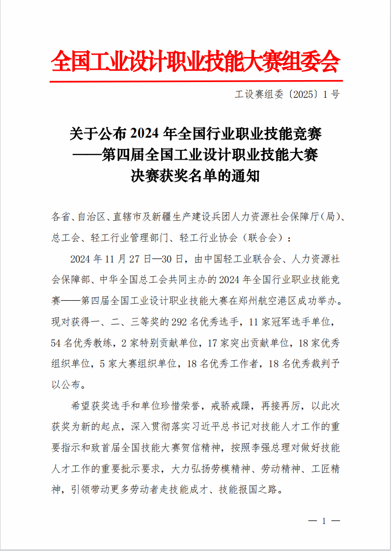 喜报|bv伟德在第四届全国工业设计职业技能大赛喜获佳绩
